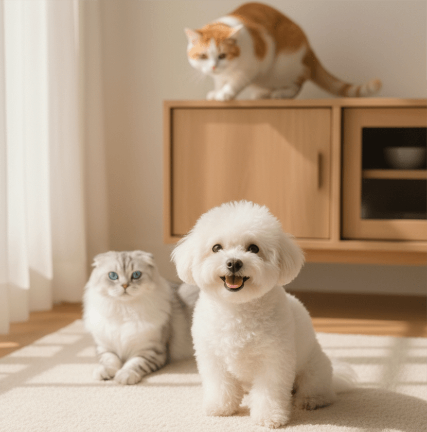 And Kiki, a proud Scottish Fold left behind by her owner.