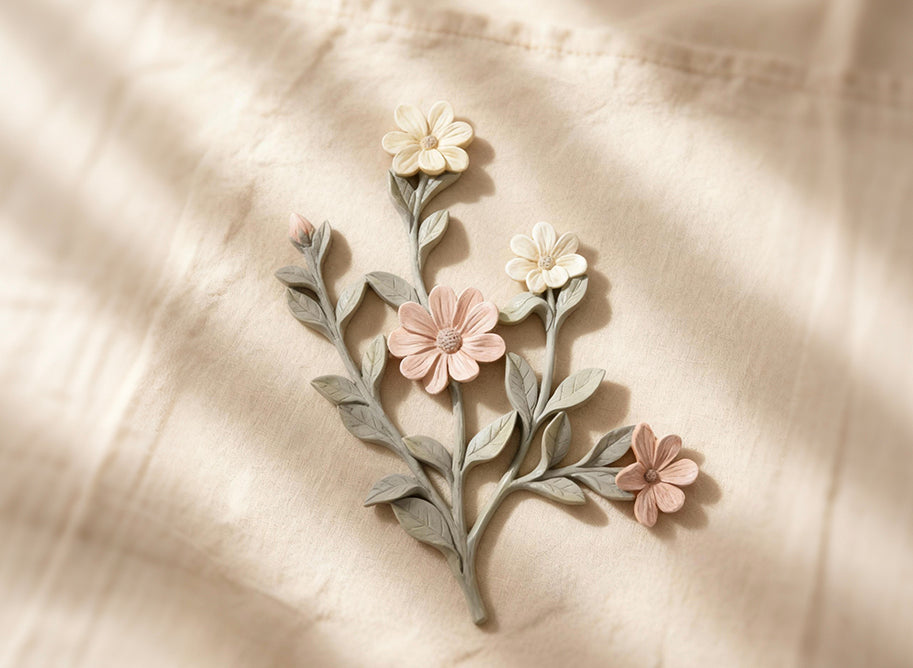 Each floral detail on DAISY is carefully hand-shaped to feel soft, organic,DAISY