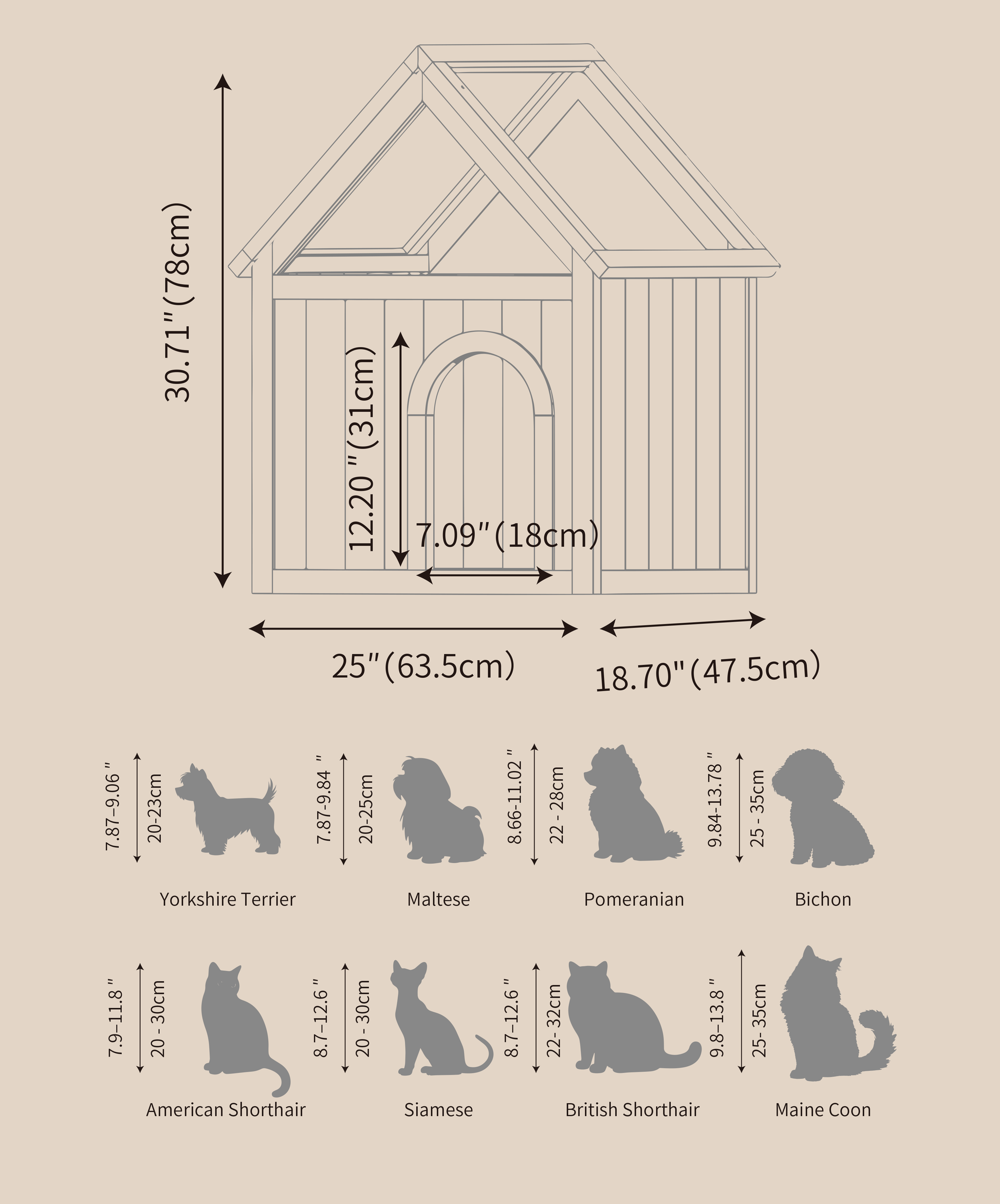 - Entrance Opening: 28 x 34 cm Suitable for small to medium pets- such as Bichons,Pomeranians, Scottish Folds, and other pets under 8 kg